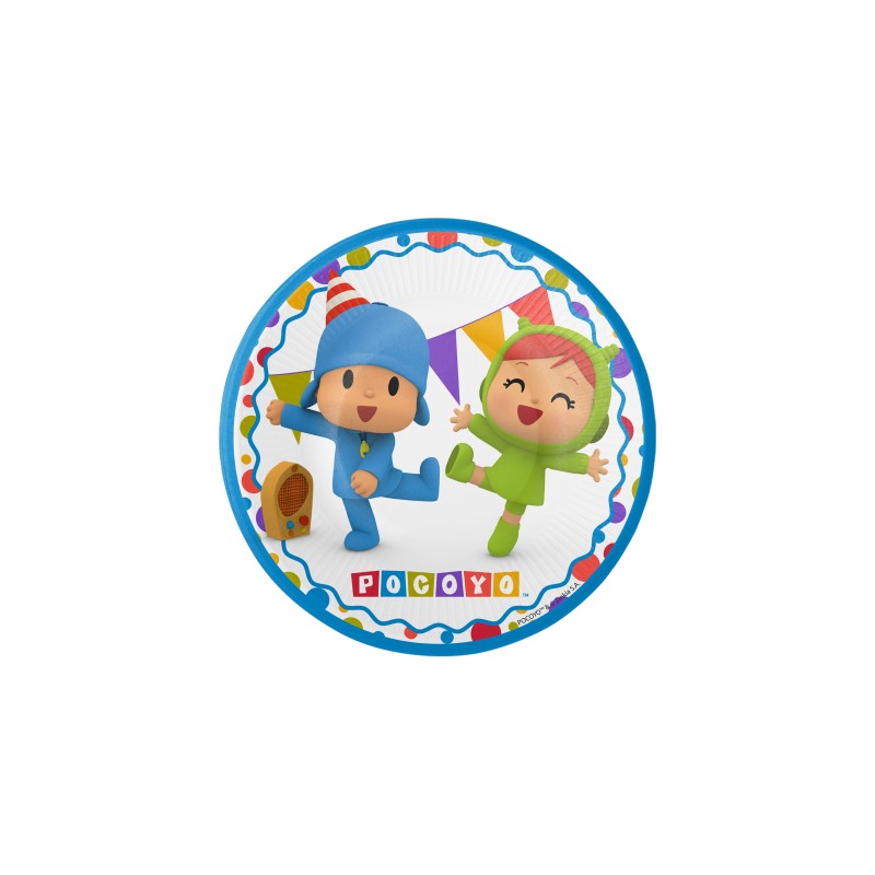 Nuestros platos de Pocoyo tienen un tamaño de 18 cm fabricados en cartón de alta calidad aunque también disponemos de otro tamaño de 23 cm de diámetro.