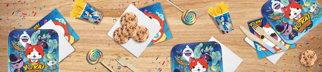 Para esto podrás comprar una gran cantidad de artículos de cumpleaños Yo Kai Watch temáticos para decorar las mesas dentro de nuestra tienda online. El mejor precio en globos, banderines, figuras, carteles, cajitas, vasos, cucuruchos, bolsas y platos diseñados al estilo de esta temática para darle más alegría a tu fiesta. Recuerda que en caso de no encontrar un complemento específico puedes usar decorativos de colores relacionados.