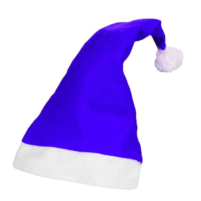 Uno de los gorros de navidad que más éxito tiene durante las fiestas de navidad es el gorro de papa Noel de color azul. Tiene una bola de algodón en la punta y una franja blanca en la parte inferior de color blanco, resaltando así el color azul.