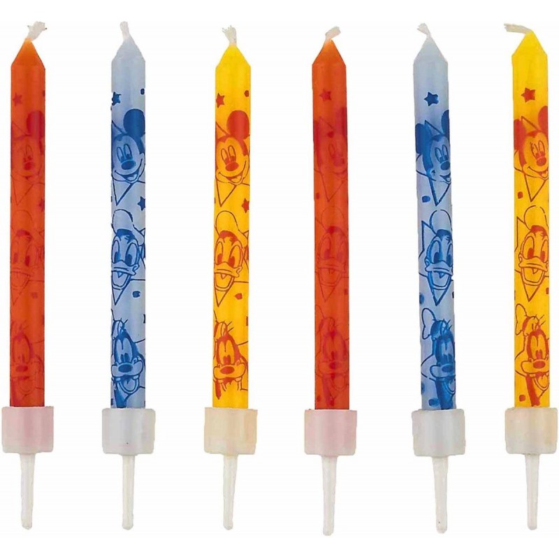 Cada pack contiene 12 velas de color azul, naranja, y amarillo, cuatro por cada color y con un estampado con la cara de Mickey Mouse.